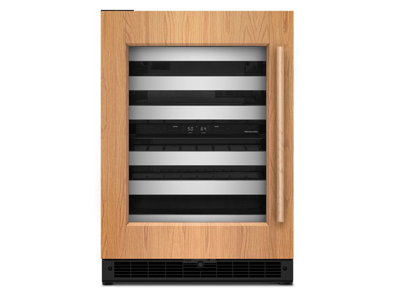 This 24" Undercounter Wine Cellar with Full-Extension Metal-Front Racks stores up to 46 standard Bordeaux-size bottles. Motion-Activated LED Lighting turns on as you approach, making it easy to see what’s inside. This Panel-Ready appliance will seamlessly fit into your cabinetry, creating a cohesive look.