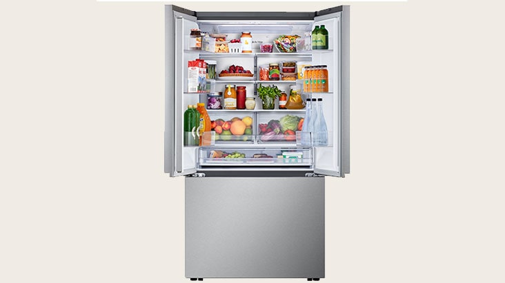 Store More. Stock-up and store everything you need. With a cavernous 26 cubic feet of space, this LG French Door refrigerator gives you ample space for all of your family’s favorite foods and keeps them conveniently organized and within reach.
