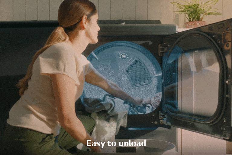 EasyLoad™ door make loading and unloading the dryer easier than ever. Swing the door to the side to clear the way for your basket below. Even tight spaces and challenging laundry-room layouts are no match for versatility like this.