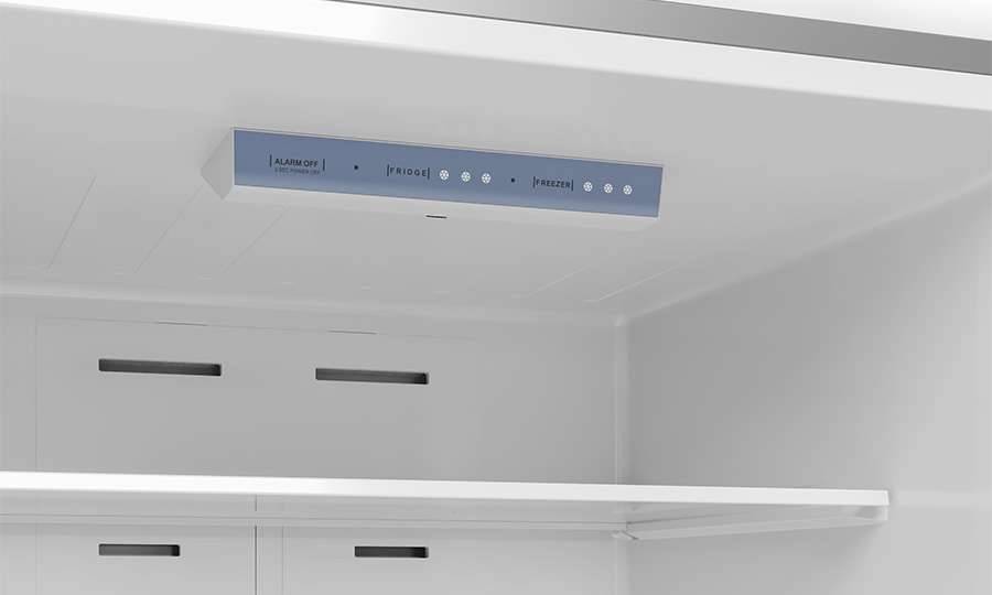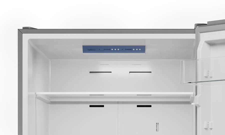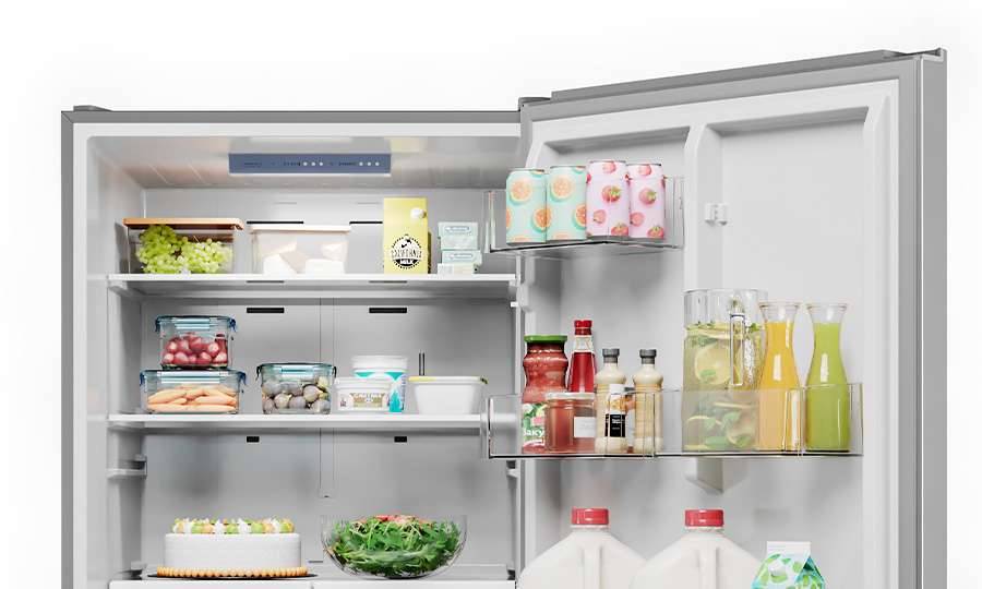 The bottom-mount freezer refrigerator keeps the food you access most at eye level for easy locating and retrieval. A crisper drawer better preserves perishables while elegant LED lighting makes it easy to find what you’re looking for. The reversible door can be adjusted to open from left or right.