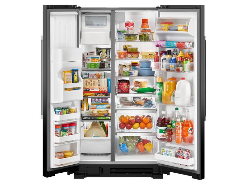 This side-by-side refrigerator is built for large capacity cooling. The gallon door bins maximize space so you can fit even more on the metal shelf and frameless glass shelves. This side-by-side refrigerator with water and ice dispenser gives you easy access to water and ice when you need it. With a 10-year warranty on the compressor*, this fridge has performance that lasts.