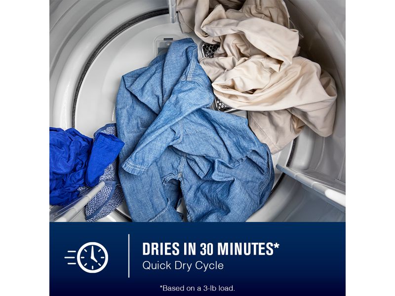 Pair Quick Wash + Quick Dry to get a small load of clothes clean and dry in 60min**Based on a 3-lb load.