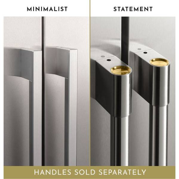 Designed to enhance choice and customization, Statement and Minimalist Collection refrigerators do not come with handles. Handles must be chosen separately and ordered through a Monogram representative