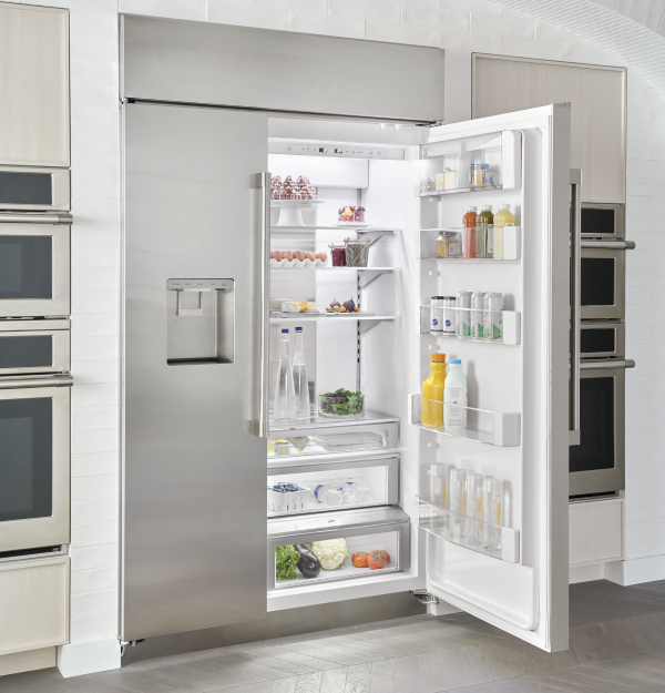 Light columns in the freezer and fresh food compartments extend the full length of the interior and LED lighting located inside the vegetable and climate-control drawers illuminate contents without compromising space