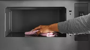 Makes it easy to wipe the interior of the microwave clean with a soft, damp cloth.