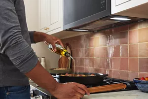 KitchenAid® Over-The-Range Microwave with Flush Built-In Design fits evenly with cabinets to give your kitchen a seamless look and feel, with a turntable-free interior that can heat multiple items at a time.* *when installed in standard cabinet depth of 12 ¾”.