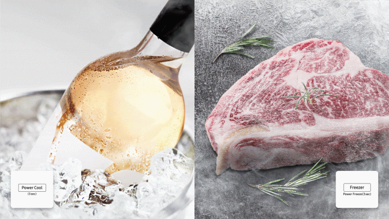 Enjoy rapid cooling performance. At the touch of a button, Power Cool blows intensely cold air into the fridge to quickly cool your groceries or favourite drinks. Power Freeze delivers a fast blast of cold air into the freezer. It’s great for freezing or firming up frozen food and making ice.