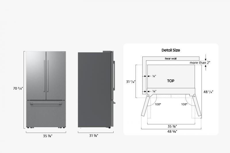 ¹Up to 0.16" (4mm) clearance required between both sides of the refrigerator and the walls for the doors to open 108°.
