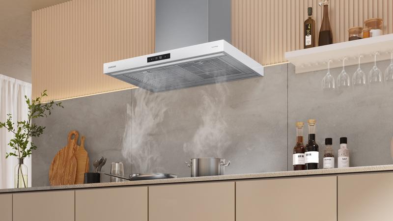 Control the hood with your voice. Using a voice assistant*, such as Samsung Bixby**, Amazon Alexa*** or Google Assistant****, you can simply say what you want the hood to do and it will do it. You can easily turn it on/off, select functions and change settings, even if you’re busy doing other things.