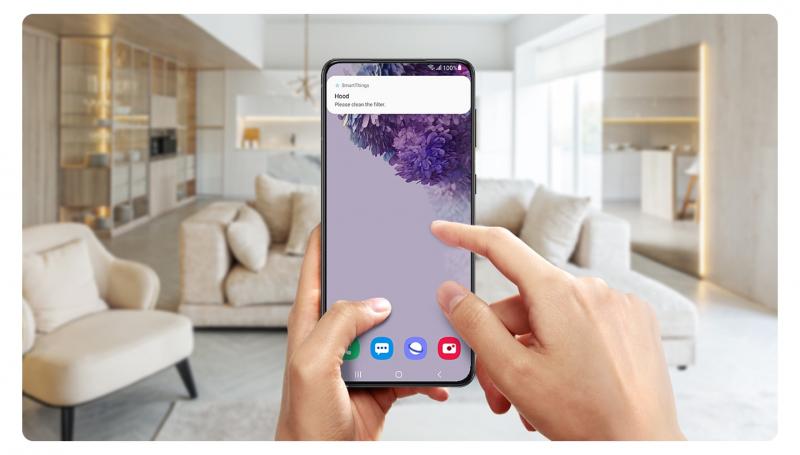 Capture airborne oil and dust more effectively with a durable Stainless Steel Filter. An Easy Off Handle allows you to remove the filter conveniently while an Easy Clean coating makes removing grease and oil effortless. It is dishwasher safe. The SmartThings App* will alert you when it needs cleaning**.
