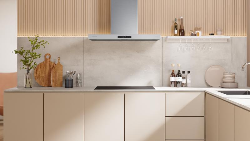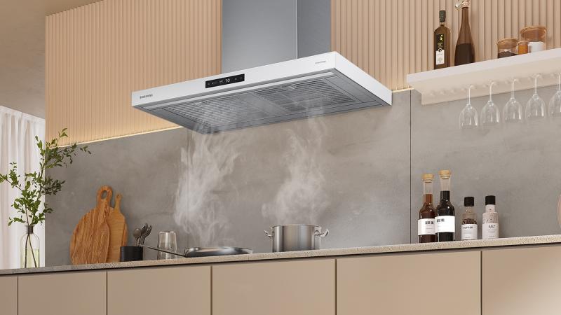 Control the hood with your voice. Using a voice assistant*, such as Samsung Bixby**, Amazon Alexa*** or Google Assistant****, you can simply say what you want the hood to do and it will do it. You can easily turn it on/off, select functions and change settings, even if you’re busy doing other things.