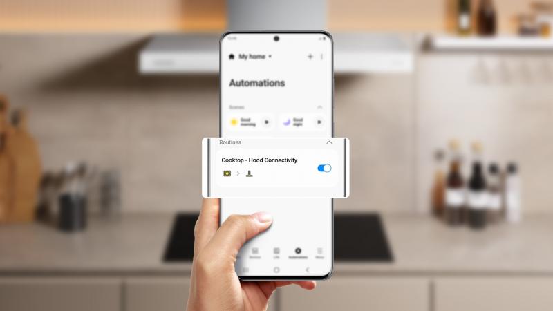 Save time and effort by automating when and how your hood works. The Automations function in the SmartThings App* lets you connect and control different appliances**. You can create customized routines that trigger multiple actions at set times or based on the activity of other appliances**.