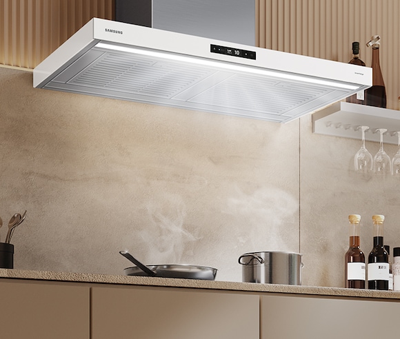 Ensure a more comfortable cooking environment. The powerful ventilation system gets rid of heat, steam, fumes and odors. You can adjust the power across 4 settings, up to an amazing 630 CFM suction capacity*. If the air quality is poor, its Smart Mode will also automatically adjust the power.