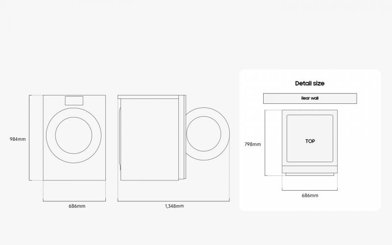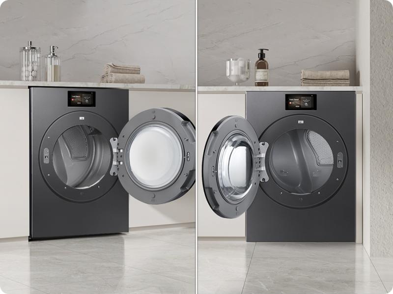 Enhance your home with a sleek, premium look. The brand-new design is simplified and seamless, with a large 7” LCD display. Its elegant flat front and back fit harmoniously with other appliances and furniture. And you can install a washer and dryer together either horizontally or vertically*.3