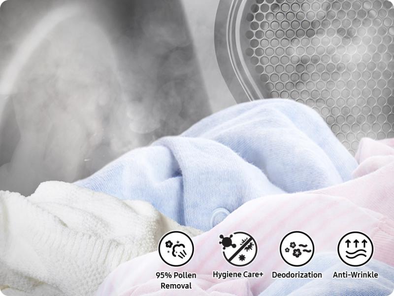 Refresh and smooth out clothes quickly without doing a full wash or dry cleaning items. The Multi Steam function infuses your laundry with steam to freshen garments and keep them smelling great. It reduces odoUrs and static, and also smooths out wrinkles in clothes*, so they need less ironing. 6