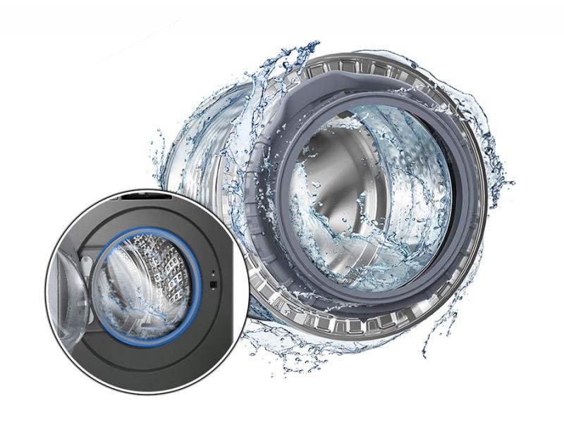 Keep the door and inside of your washer thoroughly clean and fresh. Drum Clean+ removes dirt that can collect in the drum with a combination of soaking, pulsating and spinning. A water jet and high spin speed also remove grime from the door gasket. And it notifies you when it needs cleaning*.5