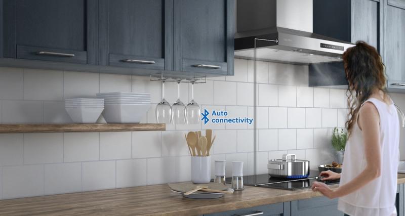 Automatically syncs the fan and the lights with the burners through Bluetooth. Auto Connectivity* aligns the hood and cooktop’s status so you can control the hood using the one-touch control of the cooktop, instantly turning them both ‘On’ or ‘Off’, for the ultimate in cooking convenience.