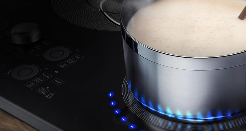 Wi-Fi Connectivity maximizes safety and offers peace of mind by letting you remotely monitor the cooktop at any time using the SmartThings app*, while setting the cooking timer and receiving alerts when it finishes.