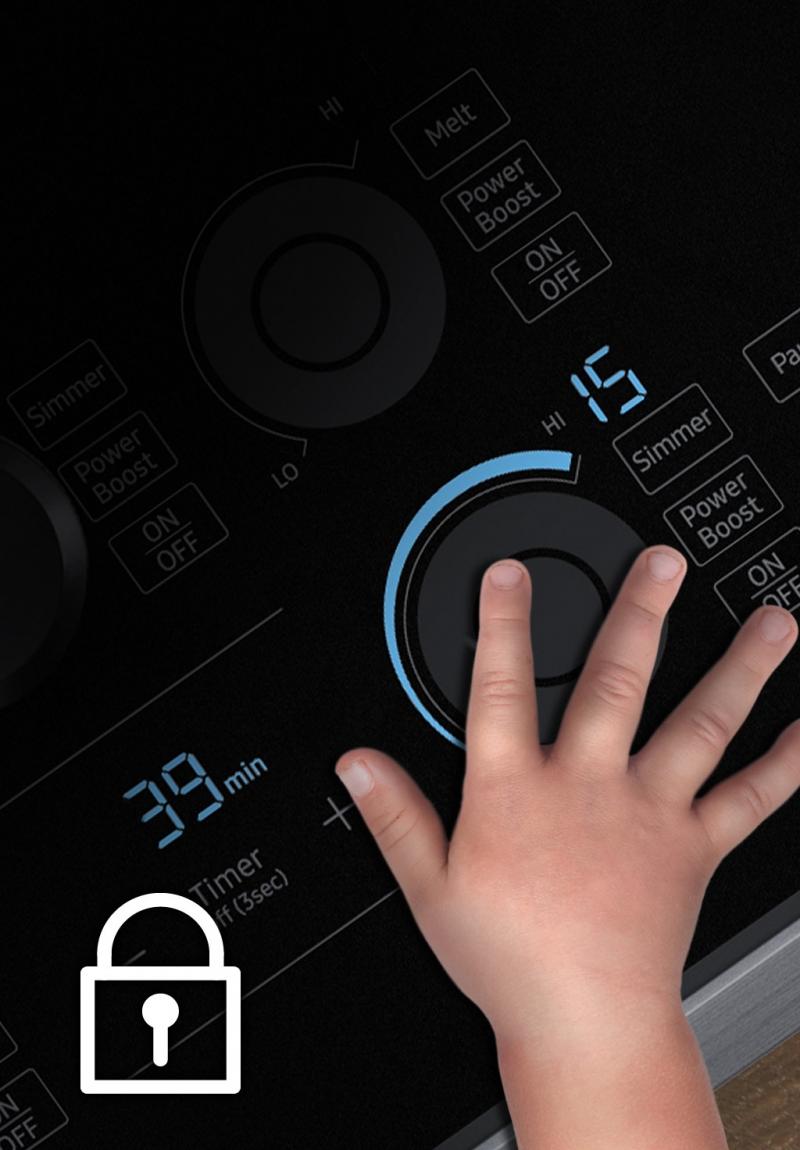 The safety lock functions allows for the control panel to be completely locked with just the touch of a button.