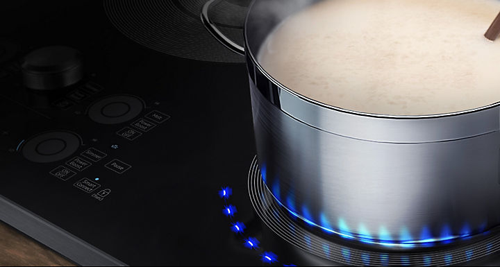 Wi-Fi Connectivity maximizes safety and offers peace of mind by letting you remotely monitor the cooktop at any time using a smartphone App*, while setting the cooking timer and receiving alerts when it finishes.