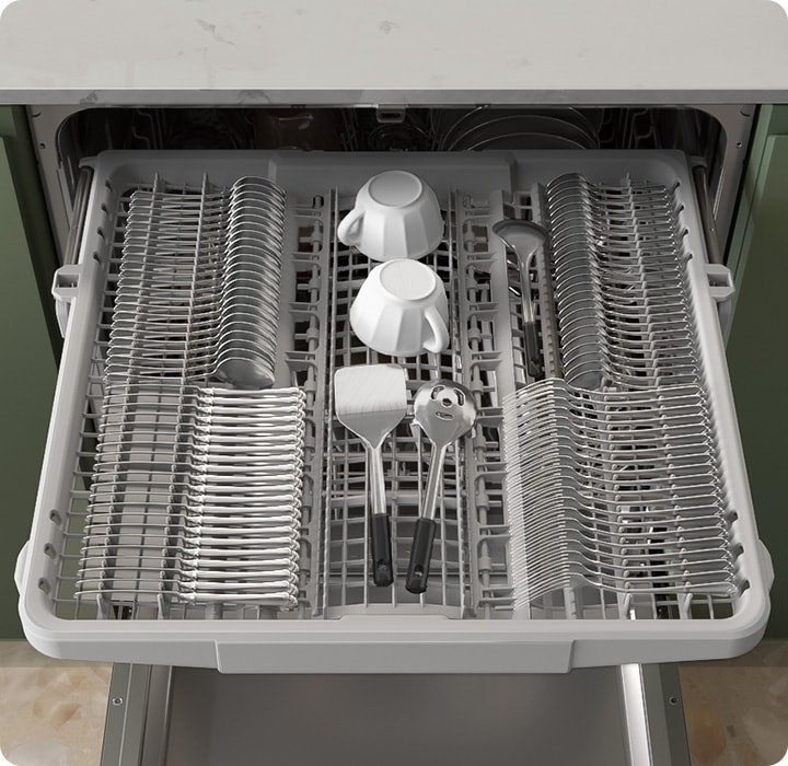 A convenient 3rd rack provides extra space to load small mugs, utensils and silverware. Frees up to 30% more space for other items, enabling you to load everything more efficiently.*