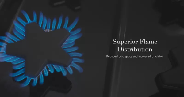 The Patented Star® Burner allows for superior flame distribution with 56% more coverage, resulting in a reduced cold spot and more precise control over everything you cook.