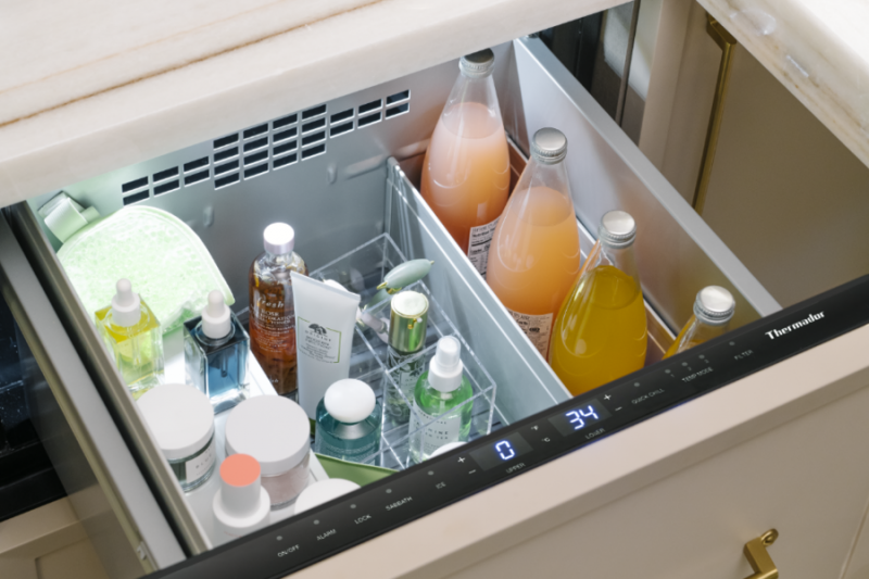 Four Cooling Modes include refrigeration mode to preserve fresh produce and cool summer snacks, pantry mode to store items like sugar or salt for margarita glass rims at warmer temperatures, bar mode, to perfectly chill beverages at the optimum temperature and a quick chill button that quickly brings the temperature down to cool items fast.