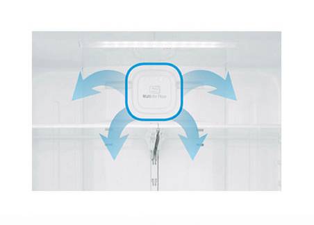 Multi-Air Flow Cooling uses multiple air vents along with deluxe shelving to ensure that an equal amount of chilled air reaches each shelf for quick and uniform cooling. This keeps your food fresh longer.