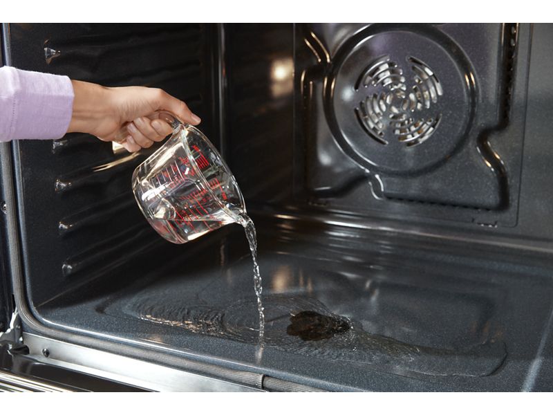 Clean up after everyday light spills using only heat and 1-1/4 cups of water—no harsh chemicals or cleaners needed. Used periodically to clean light spills on the bottom of the oven, it keeps the oven clean and reduces the need for frequent self-clean cycles.