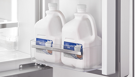 Featured on both sets of doors, our wide gallon door bins easily accommodate two large, side-by-side gallon containers each.