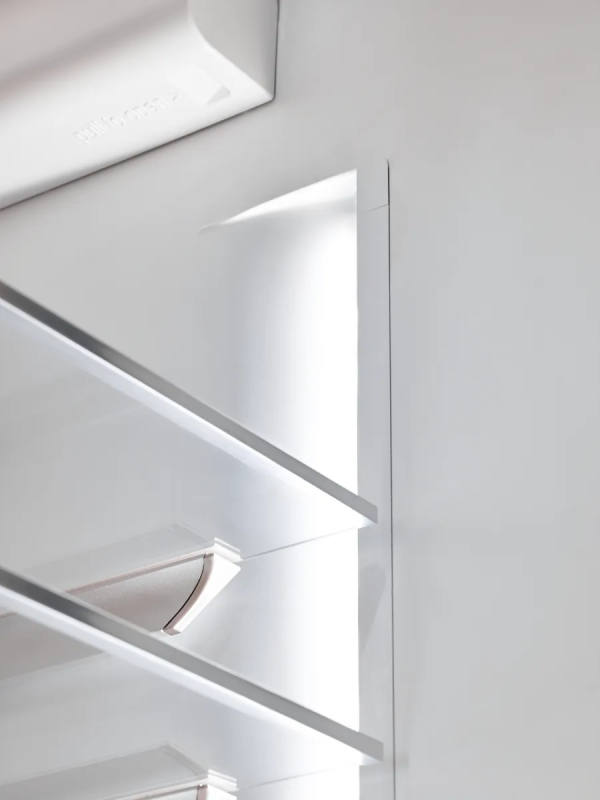Place your fridge wherever you want. Other standard fridge freezer models on the market need a distance of around 10 cm from side walls for doors and drawers to open. Thanks to Perfect Fit, our freestanding fridge freezer range can be positioned right against walls and furniture. The fridge freezer width corresponds to the niche dimensions.