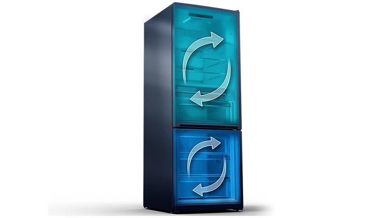 Duo Cycle Frost-Free Cooling maintains consistent air temperature and humidity in both the freezer and fresh food compartments, ensuring optimal food preservation and maximum energy efficiency.