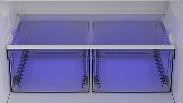 Blue Light Technology keeps fruits and vegetables fresh and vibrant long after they’re picked. Continuous blue light rays illuminate the crisper, allowing photosynthesis to persist, extending shelf life while preserving natural flavors, colours, and nutrients.