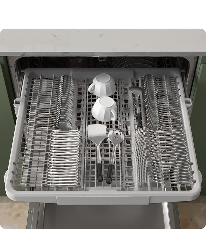 Fit in many different types and sizes of dishes more easily. The Height Adjustment feature lets you quickly move the upper rack up or down by an extra 2 inches. By creating more space in the lower rack, it can accommodate various sizes and shapes of dishes, including tall pots and large plates.