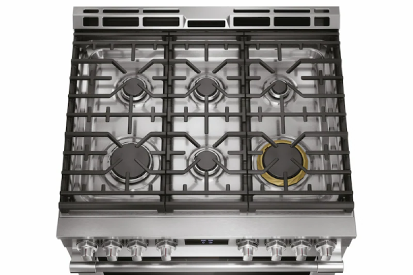 The flexible six burner cooktop includes our powerful 18,000 BTU EvenTemp® burner and features an integrated cast iron griddle.