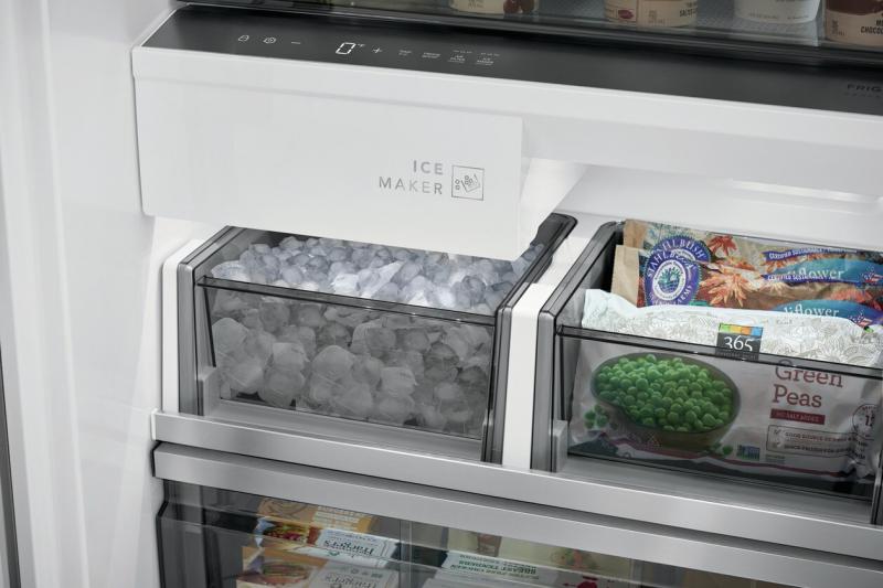 Easily organize your family's favorites with our adjustable smudge-resistant stainless steel (metal) shelving, movable full-width dark tinted door bins with metallic trim, divided bottom drawer, soft freeze drawer, and glide-out ice maker.