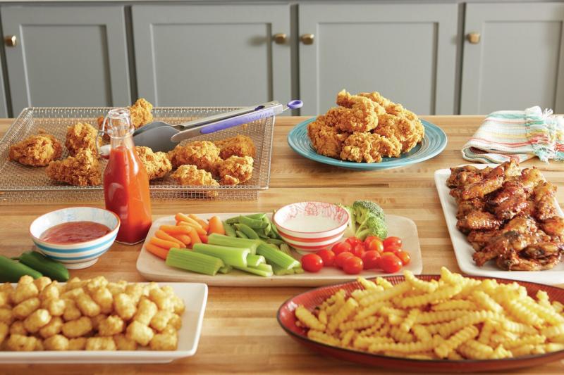With Fits-More capacity, prepare family-sized batches of your favorite fried foods. Air Fry Tray cooking capacity can hold over 3 lbs of chicken wings, french fries and other sizable dishes for a large group of people.