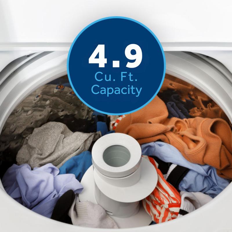 From soccer uniforms to king-size comforters, this 4.9 cu. ft. washer is designed to keep up with real life. Its extra-large capacity means fewer loads, less waiting, and more time for what matters.