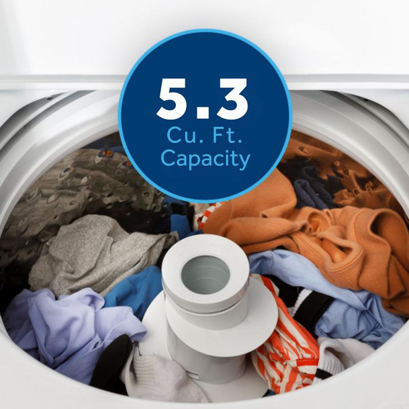 From soccer uniforms to king-size comforters, this 5.3 cu. ft. washer is designed to keep up with real life. Its extra-large capacity means fewer loads, less waiting, and more time for what matters.