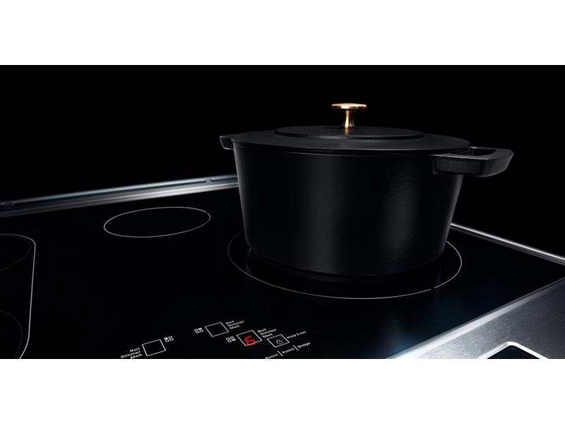 Sensor-driven elements activate upon contact with induction cookware of the right size and automatically switch off when the cookware is removed.