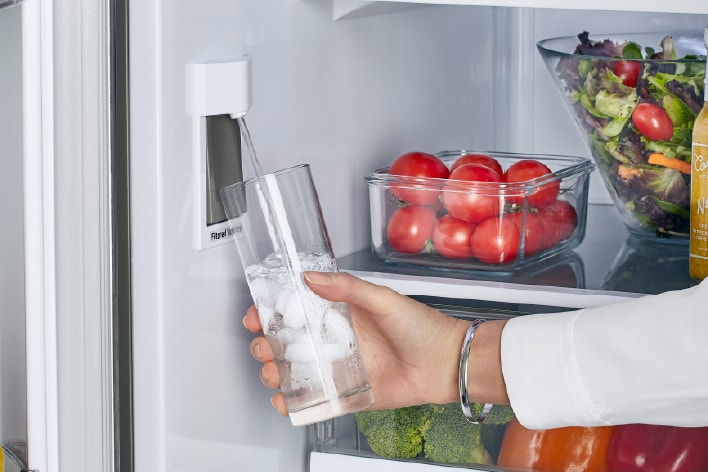 Easily access fresh filtered water with the internal water dispenser. Conveniently fill your cup, pitcher or even a small sauce pot.