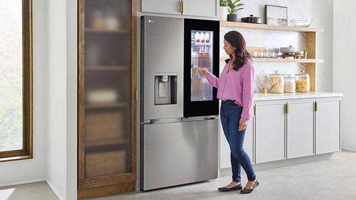 Our latest Mirror InstaView® window has a sleek design to reflect your style. With just two quick knocks on the glass panel, you can illuminate the contents within and see inside your refrigerator. See your favorites in an instant without ever opening the door, from drinks to frequently used condiments to snacks for the kids, before it reverts back to an ultra-sleek mirror finish that deserves to be seen.