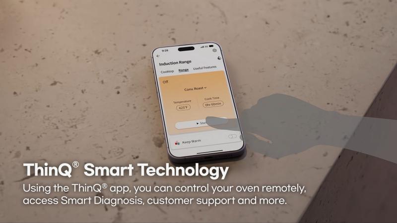 With the ThinQ® app, you check on dishes from the comfort of your couch by monitoring cooking mode and time remaining.You can even use voice commands since it works with the Google Assistant and Amazon Alexa.