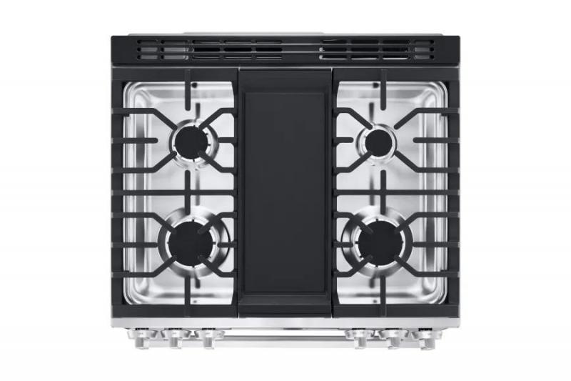 From big pans to small pots, oblong cookware to oversize griddles, the wide grate design of this LG gas range has room for them all. Rectangular grates cover more of the cooktop surface so you can use all 5 burners at once without performing a balancing act with your pans. Perfectly practical—the heavy duty grates extend from edge to edge to blend in with surrounding countertops and lend a premium look to your kitchen.
