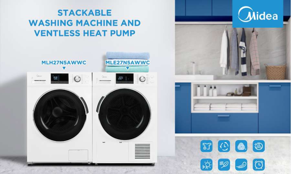 Measuring just 24", the Midea 3.1 Cu. Ft. Washer can easily fit into tight spots and can even be stacked with the 4.4 Cu. Ft. Ventless Heat Pump Dryer to optimize your space further.