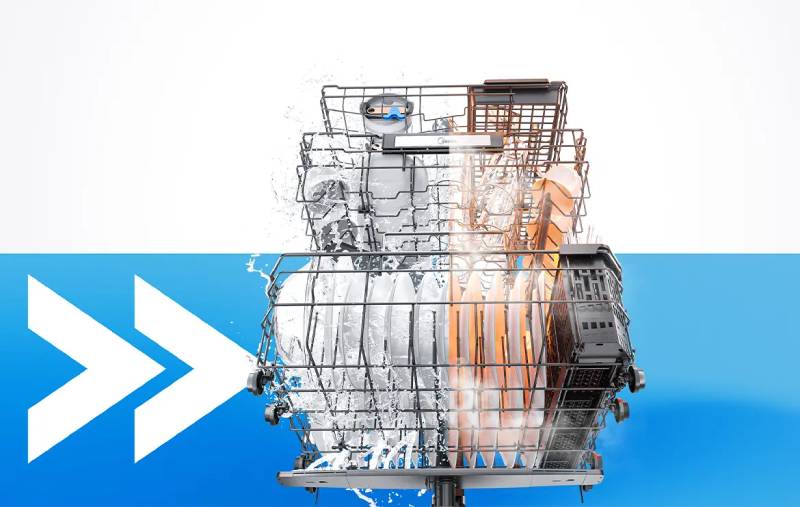 *Up to 60.5% faster than the previous generation's Normal cycle with Extended Drying. "Excellent performance" reflects DOE-tested cleaning and drying; results may vary by dishware and load.