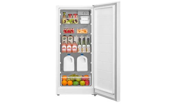 Enjoy versatile storage solutions with a convertible freezer that effortlessly switches between freezer and refrigerator modes. This adaptability optimizes space for frozen items, perishable foods, and beverages, ensuring efficient use according to your specific storage needs.