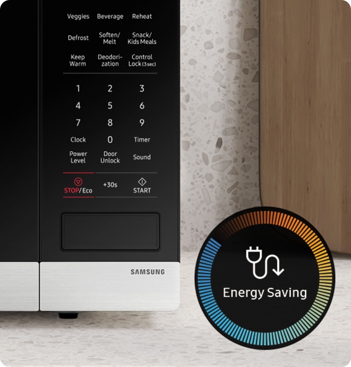 The microwave conserves power when not cooking.* Eco Mode turns off the microwave oven’s display and only uses enough power to keep it ready to use.