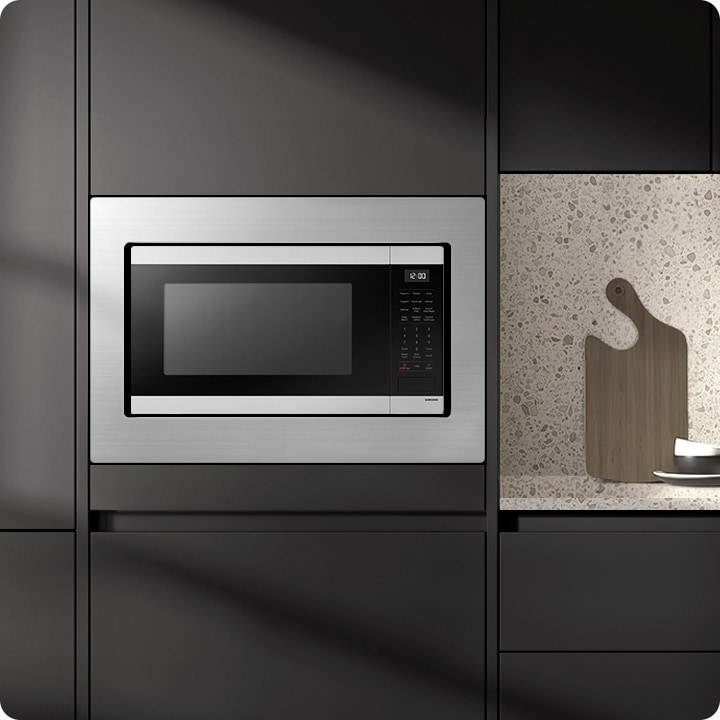 Give your kitchen a stylish built-in look. Made from stainless steel, the trim kit* accessory gives you the flexibility to install the microwave oven in a wall or cabinet space**. Its sleek frame adds an elegant finish, so it blends in harmoniously into your space.