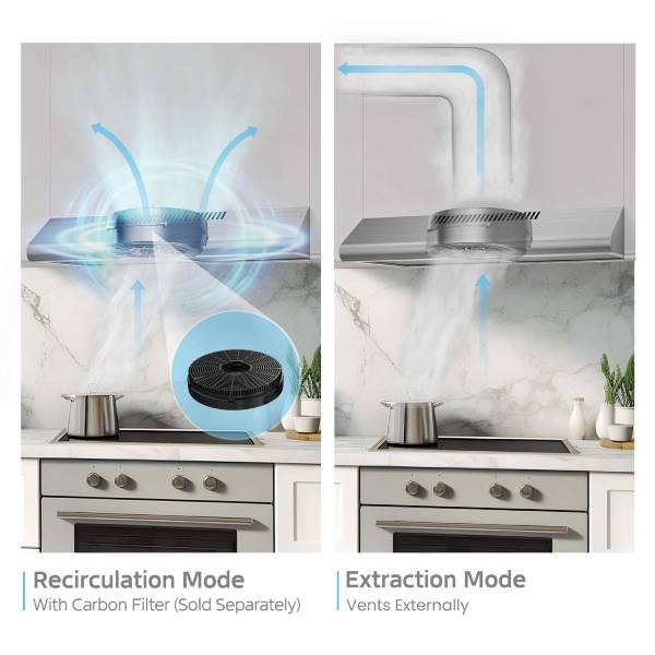 Can be installed in either recirculating mode or exhausting mode to suit your kitchen layout.